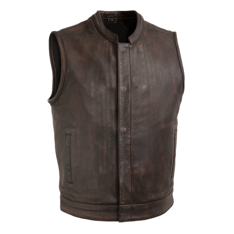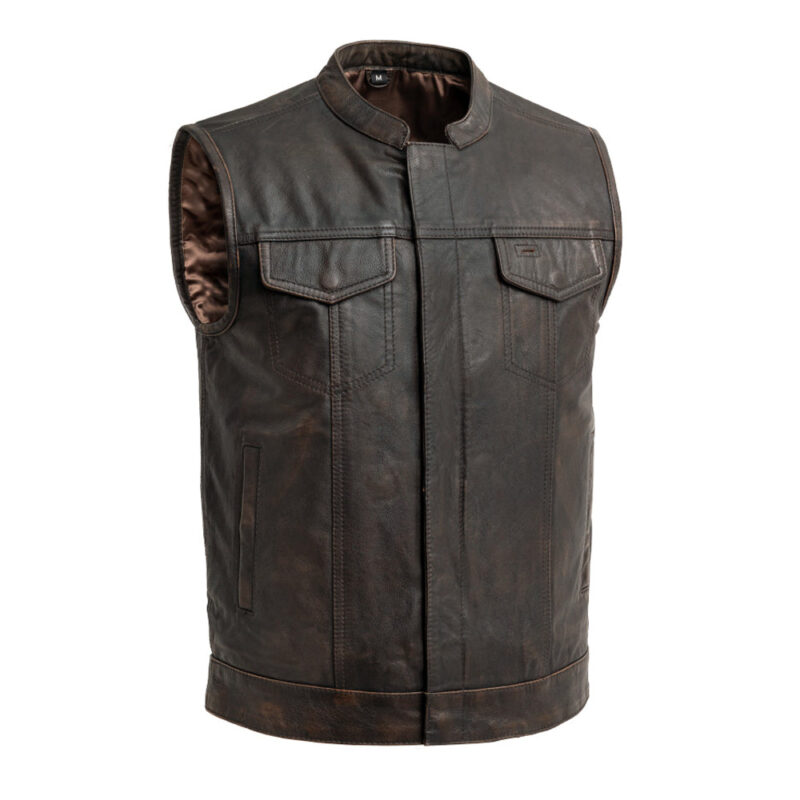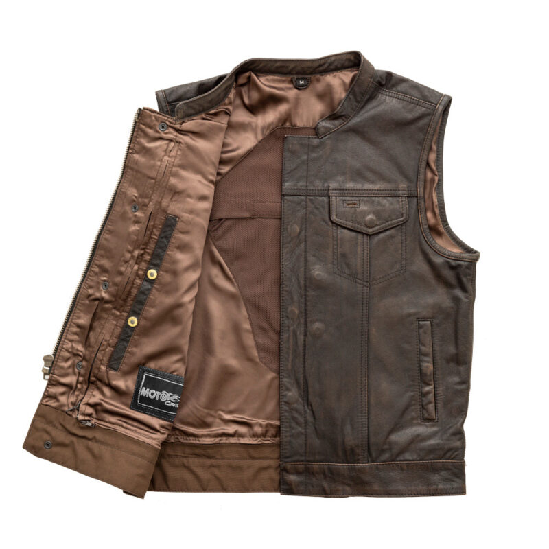 Sharp Shooter Men’s Motorcycle Leather Vest – Brown