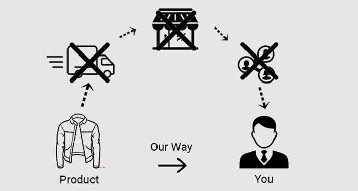 By cutting out the unnecessary expenses, designing and manufacturing in-house, selling directly to consumers and utilizing just-in-time production we are able to provide higher quality leather jackets at a fraction of market price.