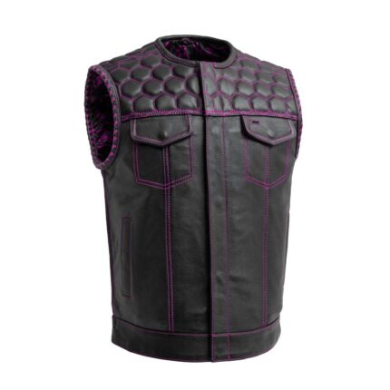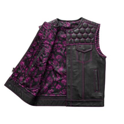 Men’s Leather Vest Purple paisley lining & Purple Thread Concealed Waistcoat