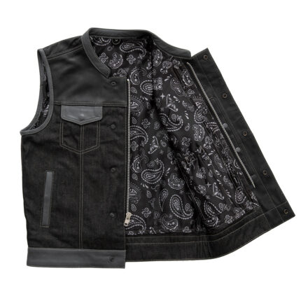 MotoGrip – Men’s Club Style Leather/Denim Vest – White Paisley Lining