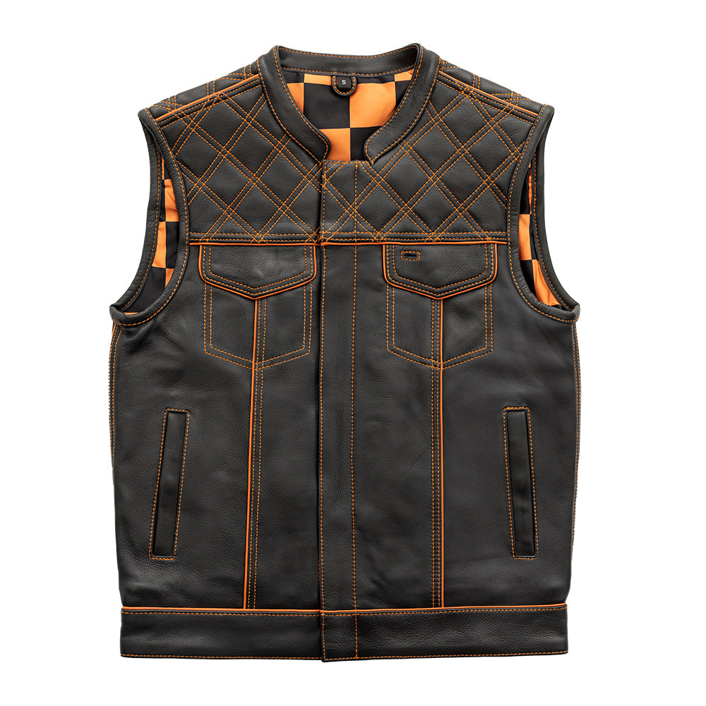 Orange Checker – Men’s Motorcycle Leather Vest