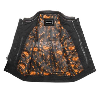 Men’s Leather Vest Diamond Style Motorbike Motorcycle Concealed Orange Waistcoat