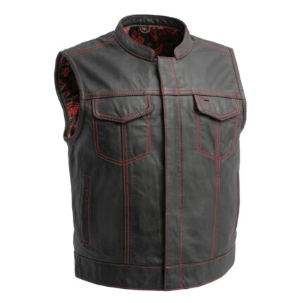 Men’s Biker Vest Hunt Club Black Leather Red Diamond Red Paisley Motorcycle Vest