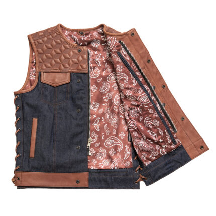 Red Label – Men’s Club Style Leather/Denim Motorcycle Vest – Limited Edition