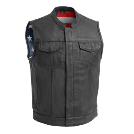 Born Free Men’s Motorcycle Leather Vest – Black Stitch
