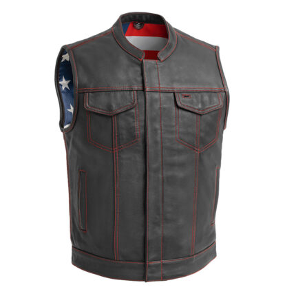 Born Free Men’s Leather Motorcycle Leather Vest – Red Stitch